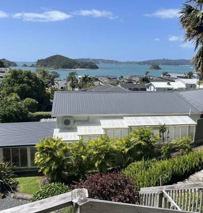 Our one bedroom self-contained Suite has the highest Sea View looking out over central Paihia towards Russell, Ta Peka and the Nine Pin. Plus there are No Stairs to climb to see this fabulous view!!
