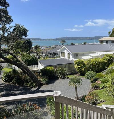 Our one bedroom self-contained Suite has the highest Sea View looking out over central Paihia towards Russell, Ta Peka and the Nine Pin. Plus there are No Stairs to climb to see this fabulous view!!